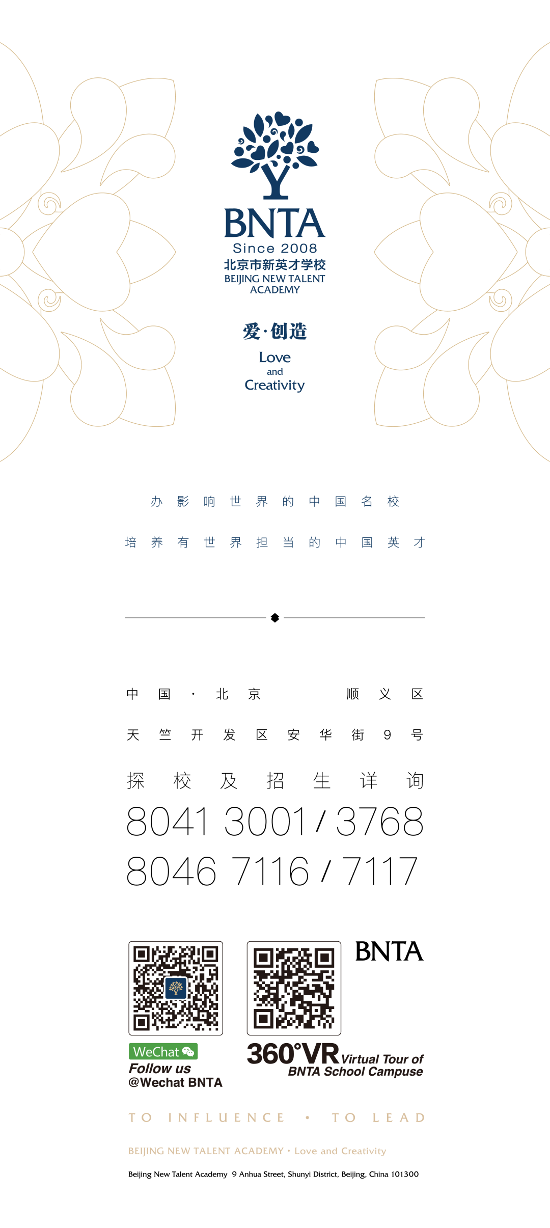 新英才学子必须具有的品质,是学校对我们每一位孩子的期望。愿爱世界、身心健雅、终身学习、跨界交流、善于决策、勇于创新、服务中国、心系天下,这些品质将伴随孩子们的一生,成为他们成长道路上的指南针。