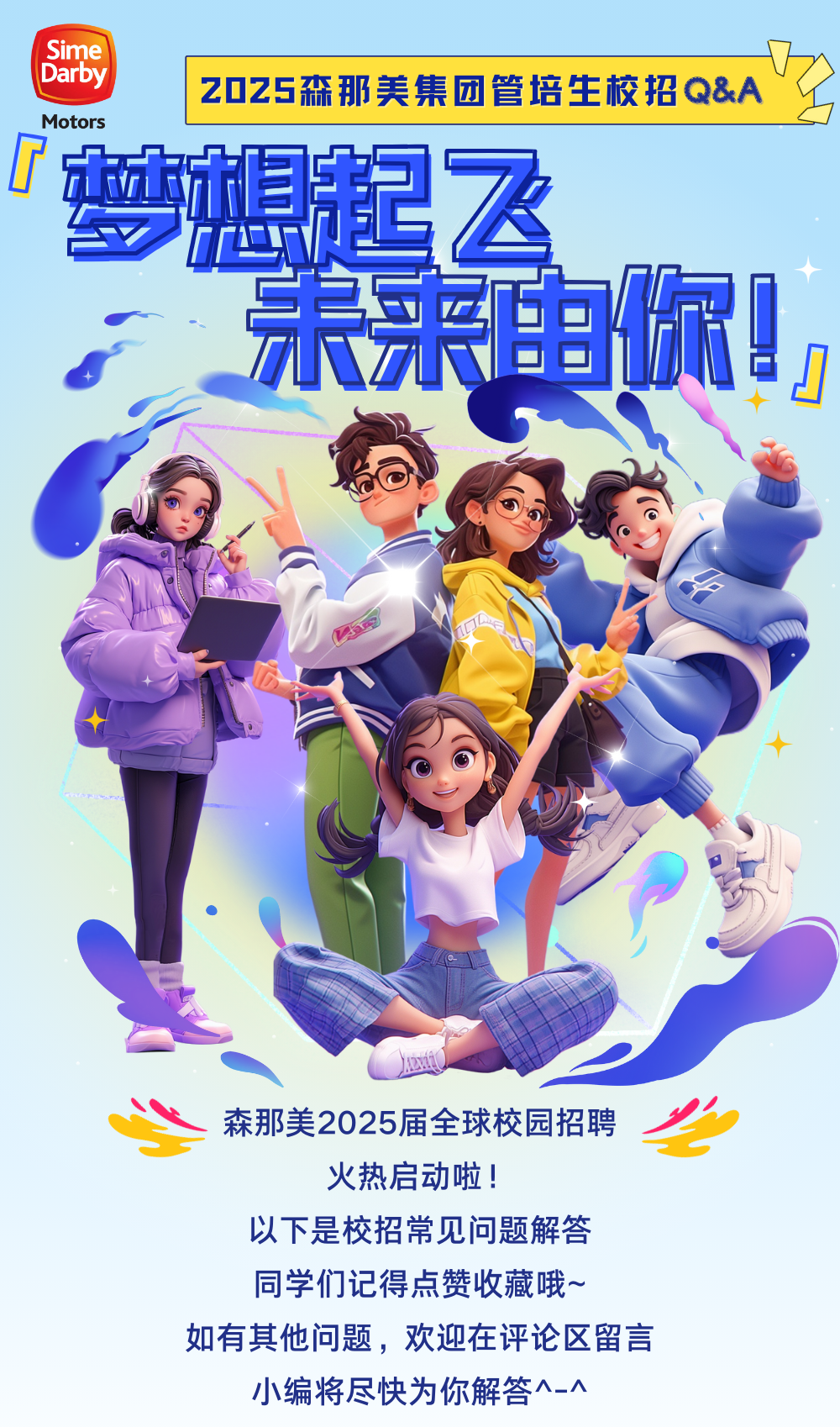 同学们可关注【森那美汽车集团招聘】公众号以及同名小红书、抖音账号,以获取更多招聘资讯;也可以在本推文评论区留言,小编将尽快为你解答,感谢关注!