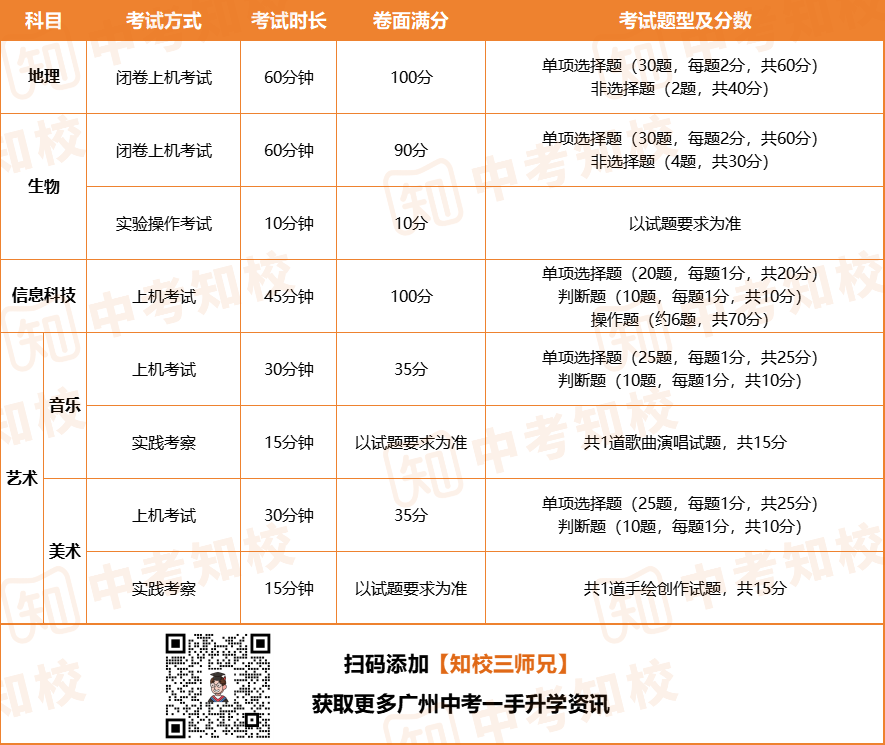 1.初中学业水平考试科目分为录取计分科目和录取参考科目,而录取参考科目包括地理、生物、艺术(音乐&美术)、信息科技4科。