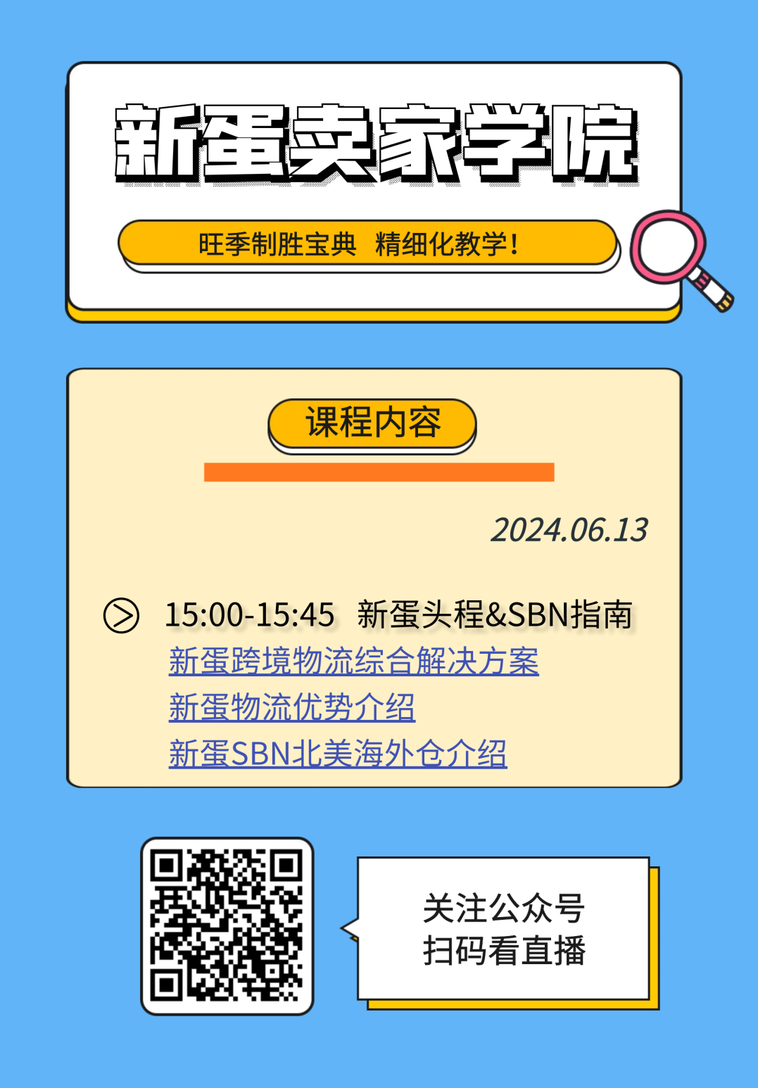6月最后一场直播,将为卖家们介绍在新蛋成功经营的品牌卖家案例,详细讲述卖家从0开始学习,如何一步步成功创收、塑造品牌!