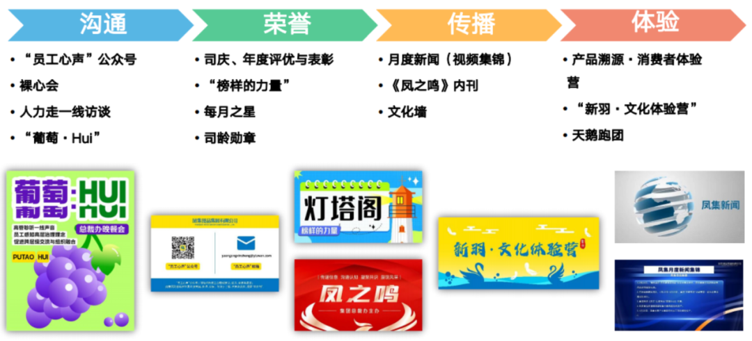 在文化建设方面,凤集制定了一套体系化的文化建设与激励方案,与业务深度融合。通过“员工心声”公众号、裸心会、人力走一线访谈、葡萄 HUI等多元化线下渠道,增强员工与管理层之间的透明度,促进信息的双向流通。公司还组织新羽文化体验营、天鹅跑团等文化活动,加深员工对公司文化的理解与认同,促进员工身心健康。基于文化体系建设,借助北森文化激励系统,线上化宣传月度新闻视频集锦、企业内刊和榜样文化等内容,作为公司内部传播的重要渠道,全方位记录公司动态、企业文化和员工风采。