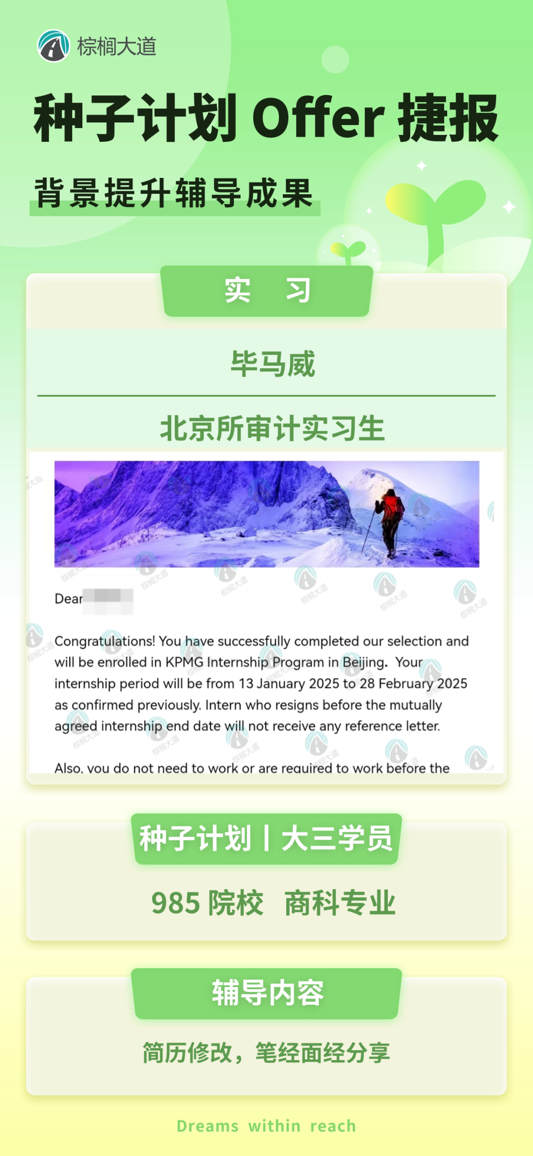 【毕马威审计实习】四大 offer 年年有,今年冬天特别多!今年寒假去KPMG的第 6 个学员!