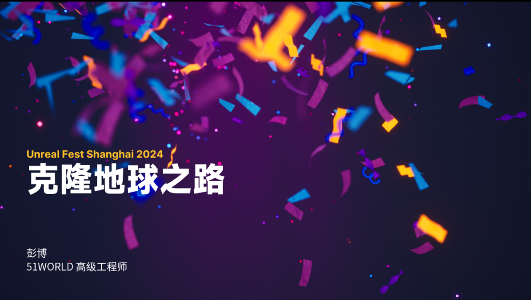 近日,51WORLD高级工程师彭博在Unreal Fest Shanghai 2024大会上进行了以“克隆地球之路”为主题的分享。以下是演讲文稿整理。