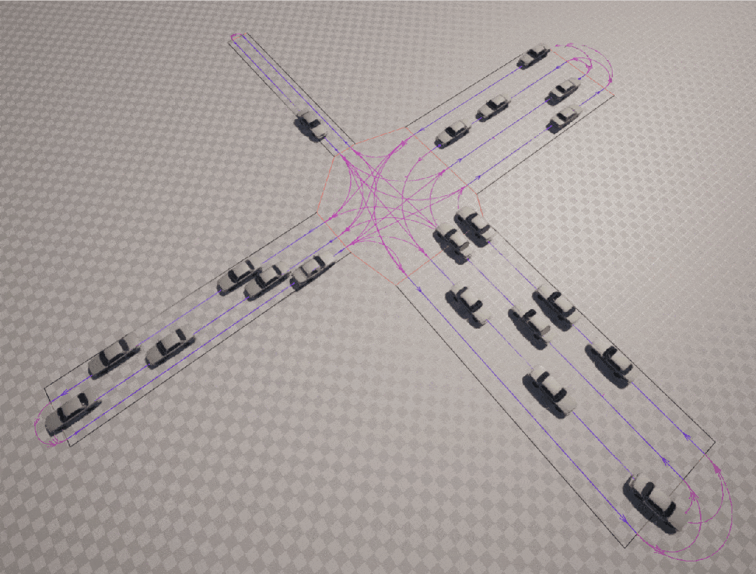 第二个问题最为致命,Build->Build ZoneGraph是WITH_EDITOR的,我们需要能运行时构建ZoneGraph。为了解决这个问题,我们通过对齐,然后通过路网信息,分别构建路口的Polygon和道路的Spline。接着扩展FZoneGraphBuilder,使其能接收注册,并生成FZoneGraphStorage。最后FZoneGraphStorage种完成注册。