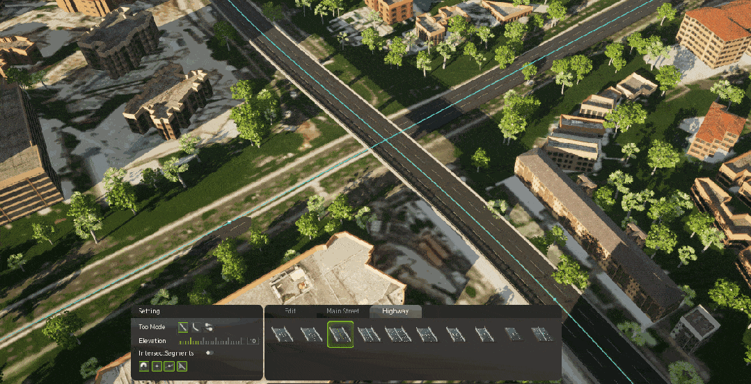 编辑时还伴随着生成结果的预览。预览生成的实现依托于程序化资产系统中的资产创作工具。预览时会生成临时对象,通过读取道路矢量数据和Prefab信息生成特殊的预览模型。当最终落笔完成时,会调用编辑器的更新流程去更新生成物。