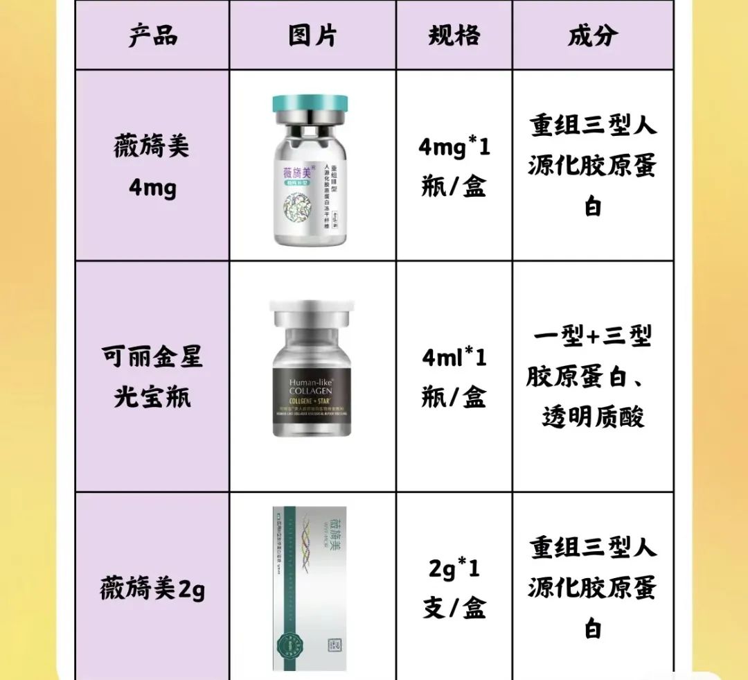 胶原水光:在普通水光基础上添加了胶原蛋白成分,抗衰小能手,改善面部皮肤状态。