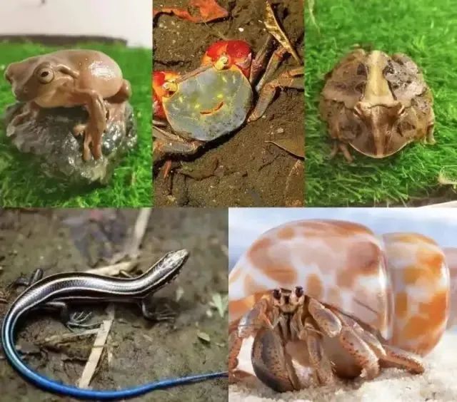 姥爷树蛙、相手蟹、霸王角蛙蓝尾石龙子、海寄居蟹六角蝾螈、雨林蝎