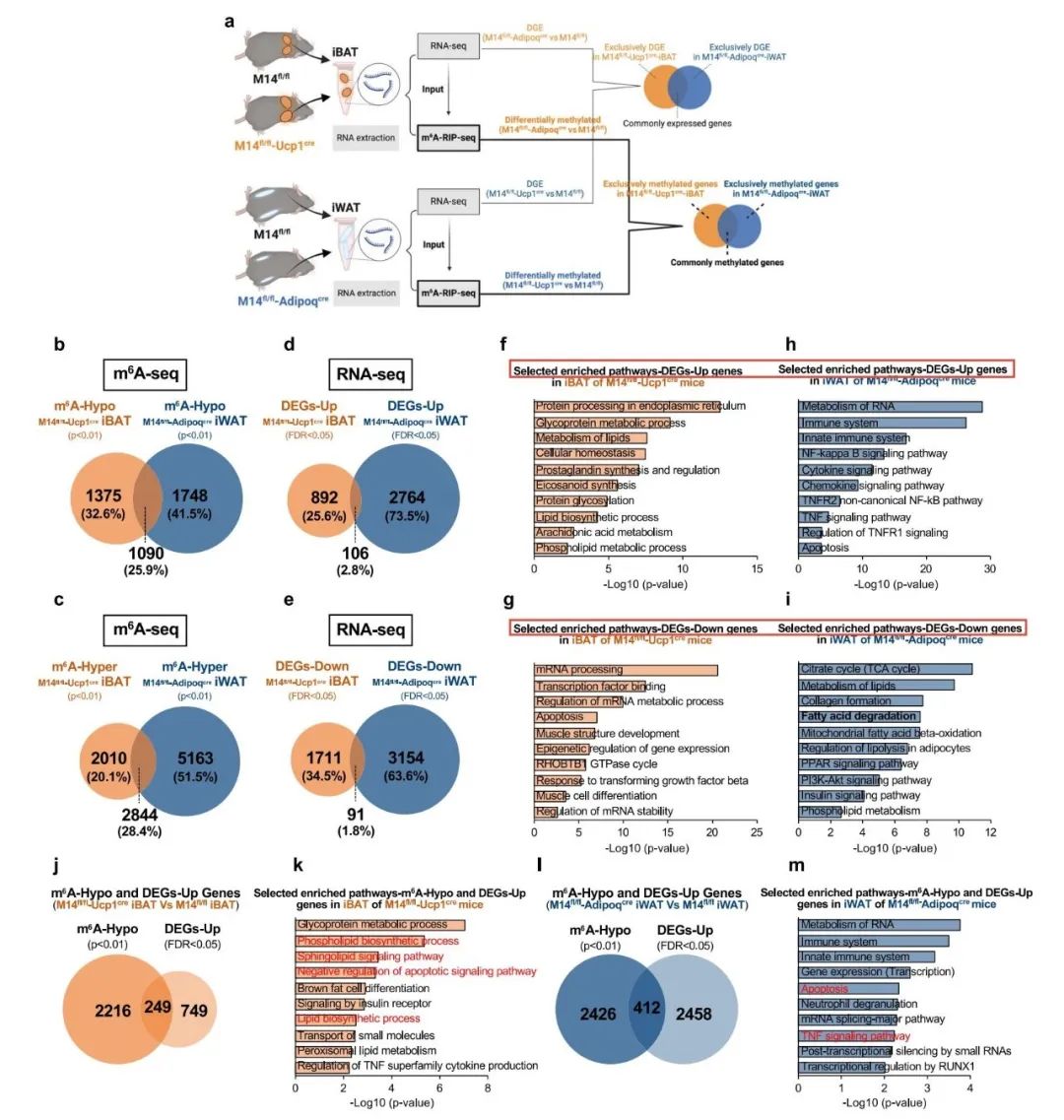 METTL14选择性地在人类棕色脂肪和白色脂肪中甲基化关键靶基因