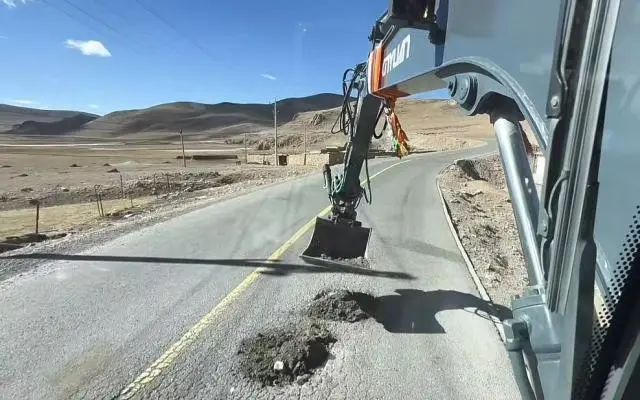 进藏318线崎岖难行,他每遇到一个坑,就操作挖机填平;
