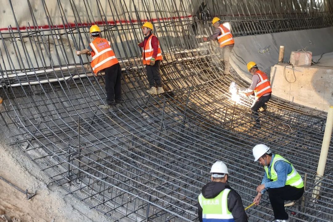 深南高铁4标项目钢筋工正在绑扎隧道仰拱钢筋