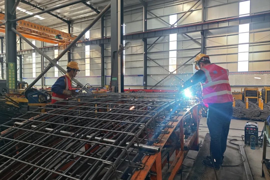 华隧建设所属广州华隧威预制件有限公司潮州分公司于2月9日正式复产。2条流水线、1条生产线开工运转,148名建设者各司其职,设备运转使用、钢筋加工焊接、产品生产制作、成品运输中转等各项工序紧密衔接。建设者们士气高昂,对按时、保质、保量完成粤东城际铁路项目预制构件交付任务充满信心。