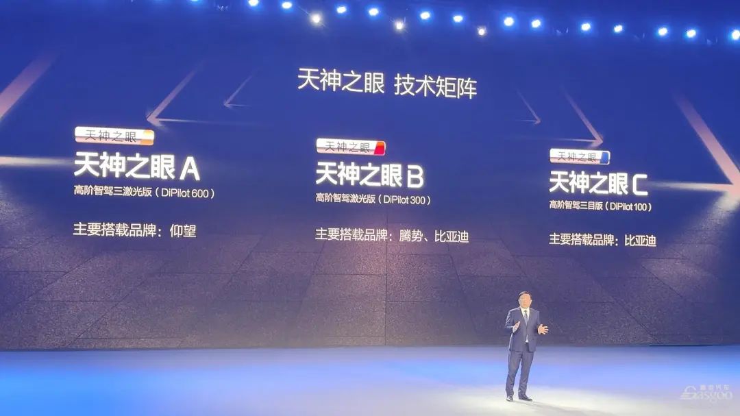 这次比亚迪带来的是天神之眼的技术矩阵,包含了 A、B、C 三个版本,每个版本都有自己的特色。