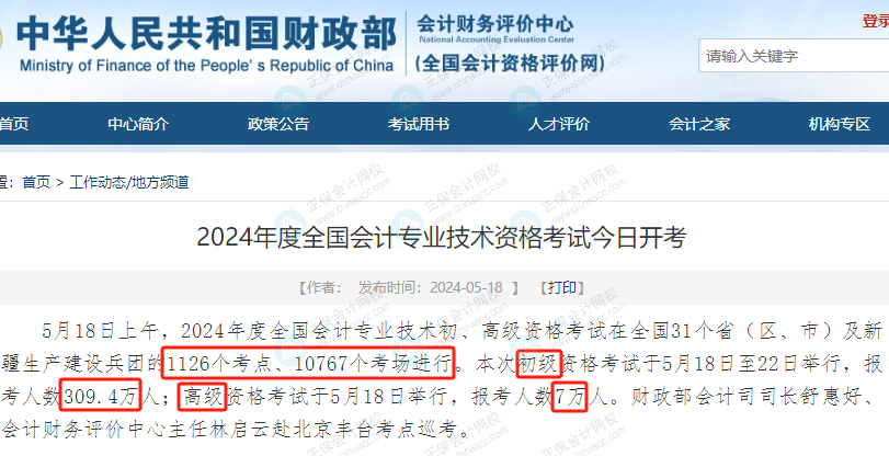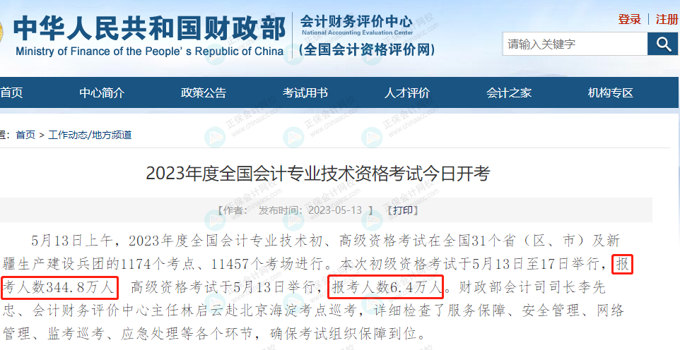 财政部在新通知中曝光了初级、高级的报考人数,其中,初级资格考试报名人数为309.4万人,高级资格考试报名人数为7万人。