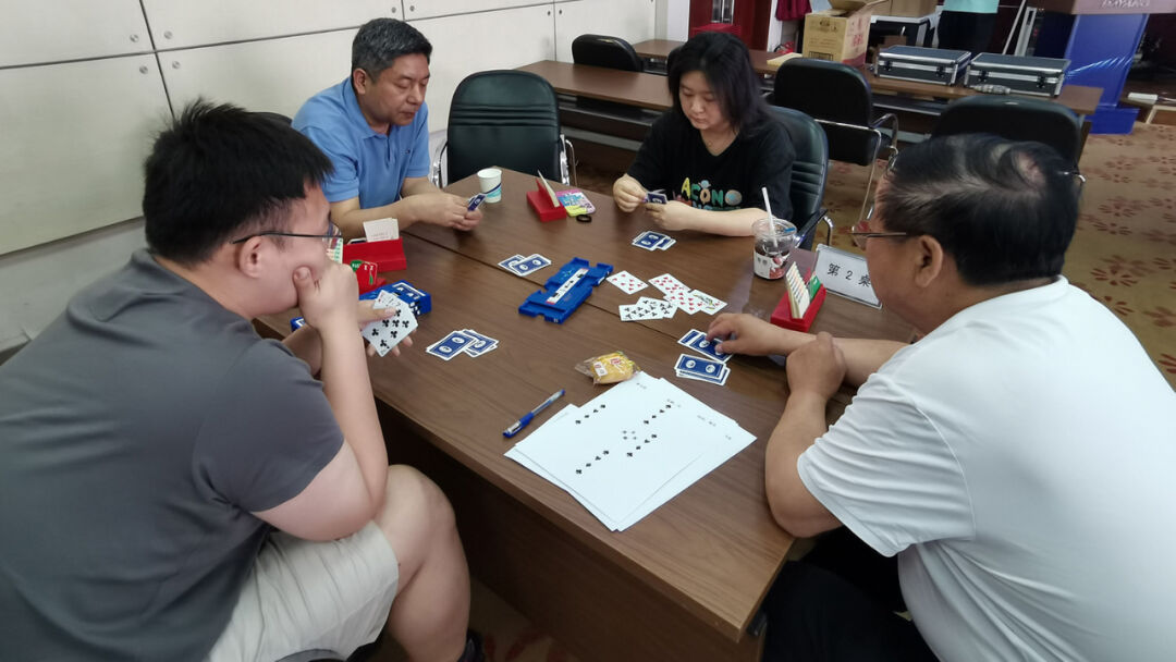 本次比赛采用双人赛模式,东西组、南北组共计7组,牌手们经过了7组28副牌的激烈角逐。有过程中的冥思苦想、有释然后会心微笑、整个比赛既友好默契,又紧张激烈。