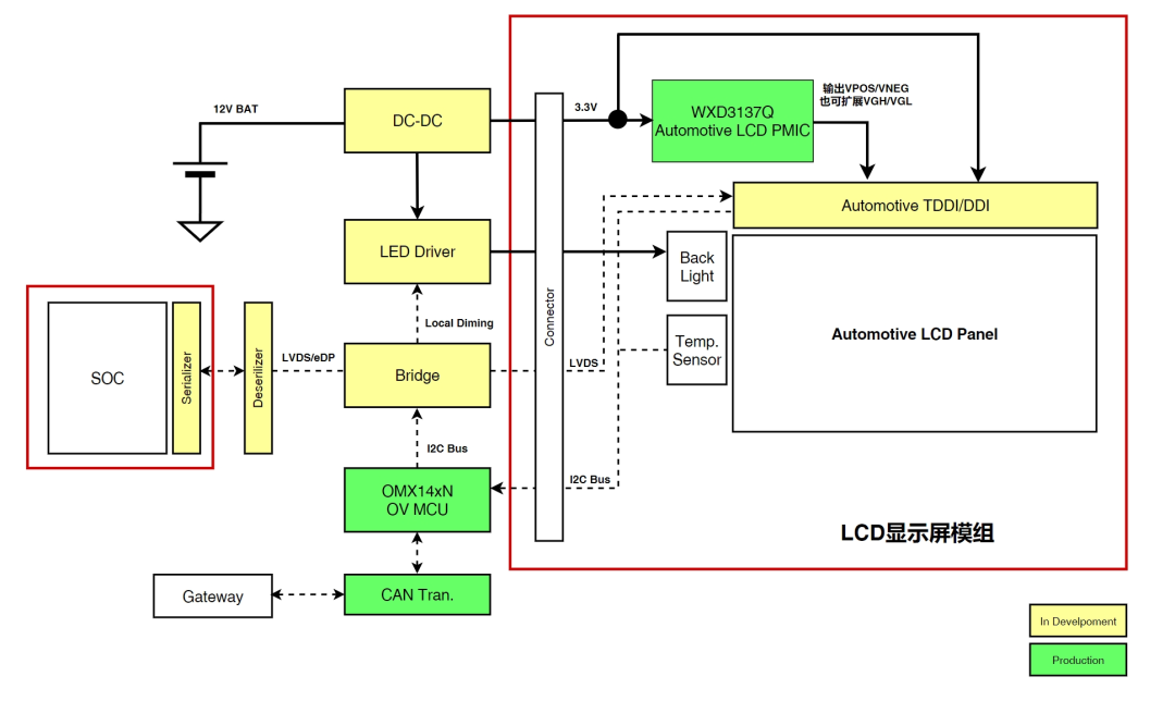 豪威集团围绕车载LCD屏幕应用打造了Total solution方案,如下车载LCD屏幕应用框图: