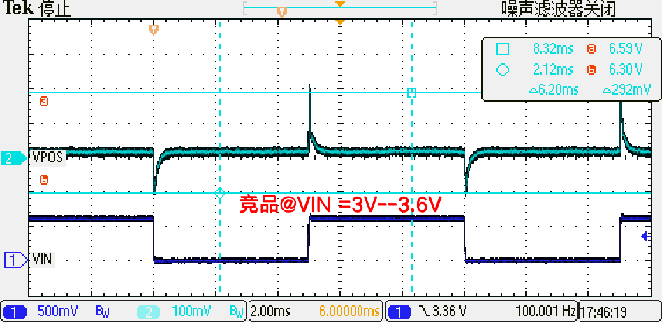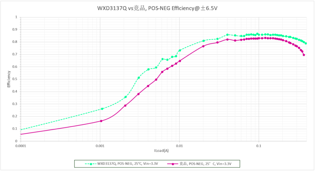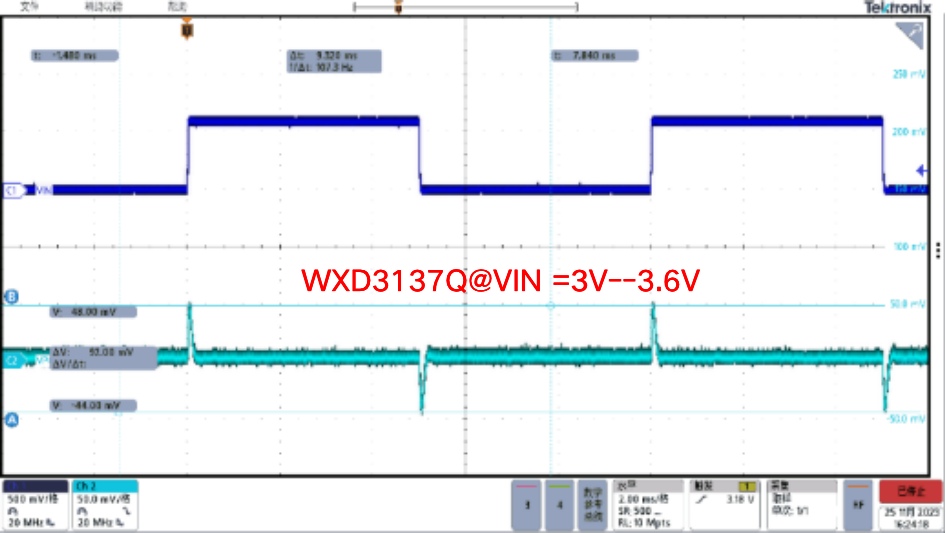 在VIN=3V至3.6V时,WXD3137Q的超调为48mV,欠调为44mV,优于竞品的192mV超调和120mV欠调。