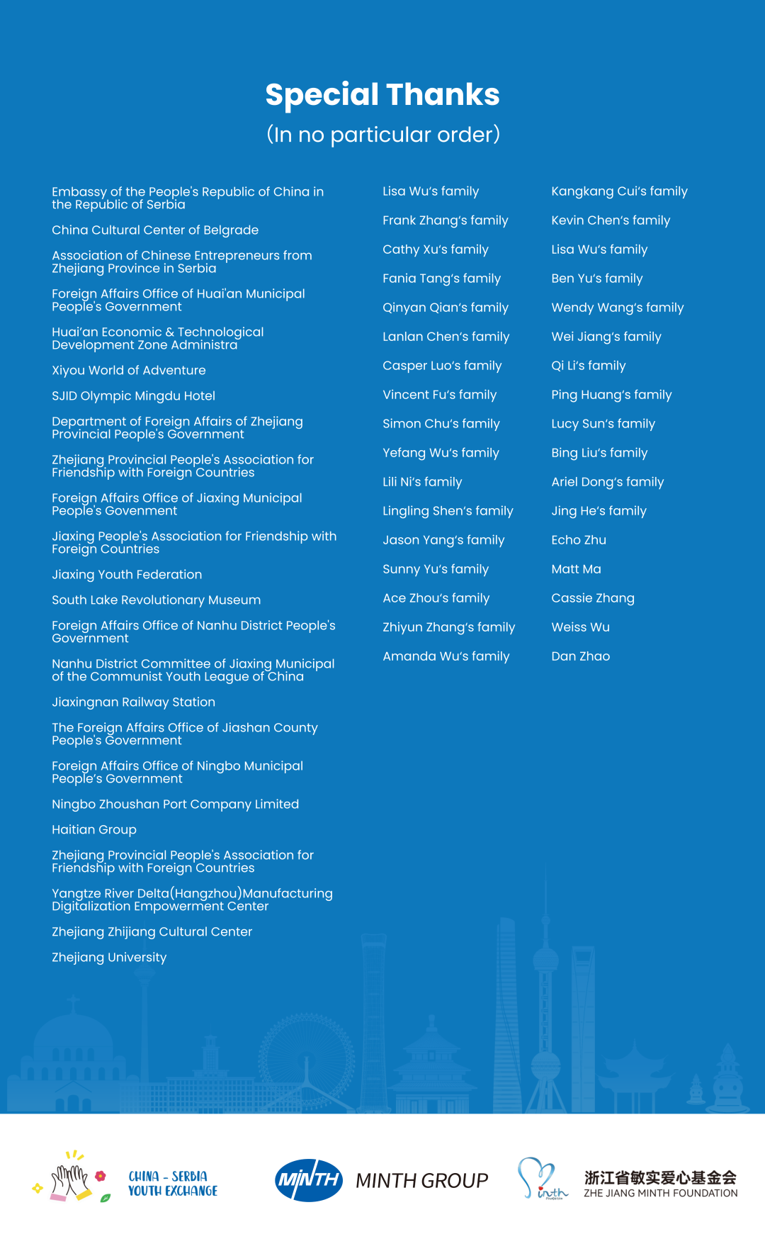 During his state visit to Serbia in May 2024, Chinese President Xi Jinping proposed a plan to "invite 300 Serbian youth to China for study and exchange over the next three years." Responding to the consensus reached by the two heads of state, Association of Chinese Entrepreneurs from Zhejiang Province in Serbia and Minth Group invited 100 Serbian youth to China from August 8 to 17, 2024, to participate in the inaugural China-Serbia Youth International Cultural Exchange Program.