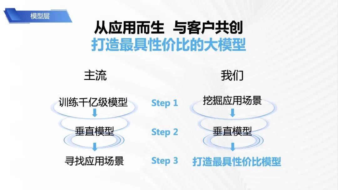 “百模大战”正在如火如荼地进行,猎户星空大模型却走了一条与众不同的务实之路。与“砸钱训练千亿级模型,再去寻找大模型应用场景”的行业主流模式不同,猎户星空一直秉持着Think Different的思维逻辑,选择“从应用而生,与客户共创”,先挖掘企业应用场景,再定义垂直模型,基于企业私有数据对模型进行打磨,最终打造出极具性价比的模型。