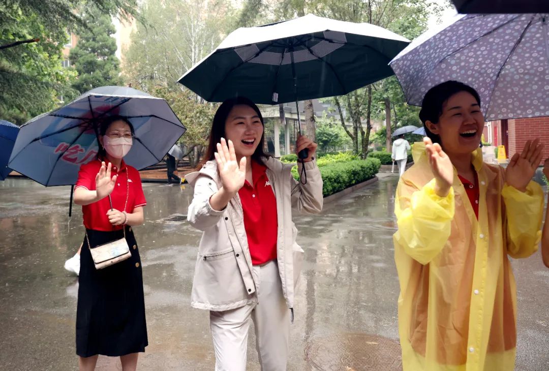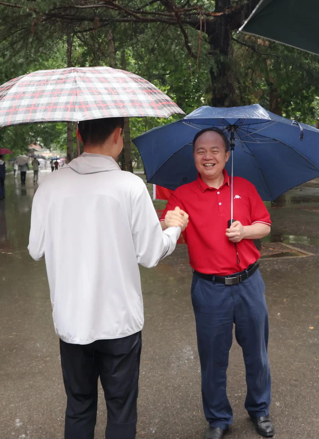 连绵不断的雨也掩盖不了你们昂首向前的信心。