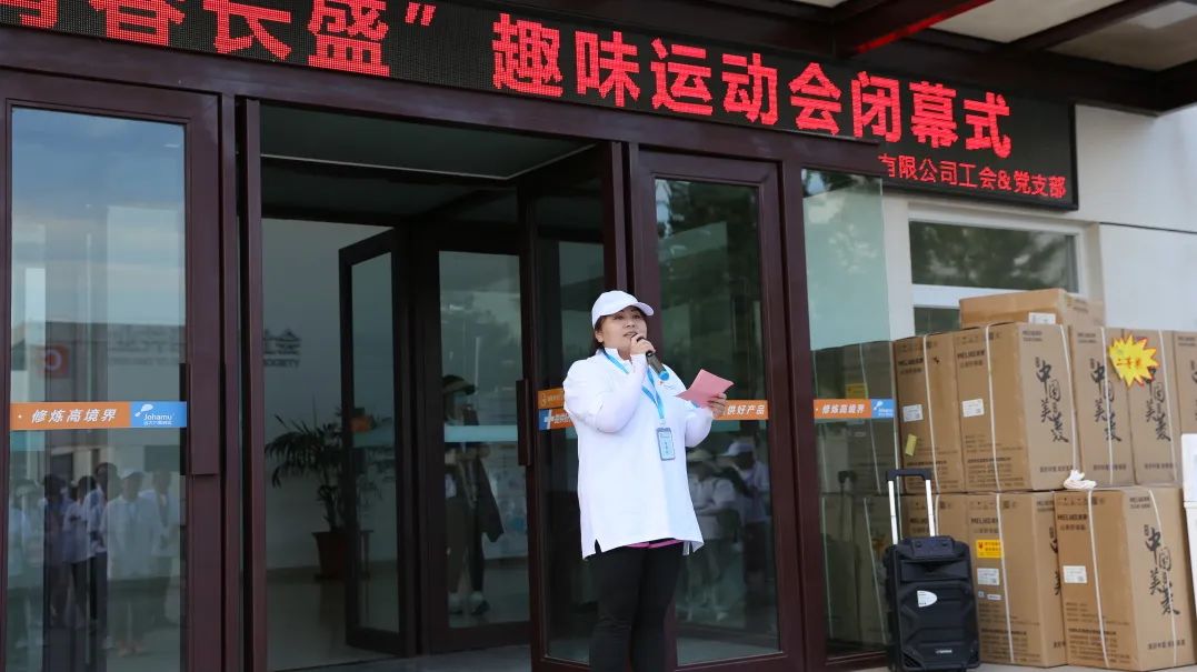 颁奖结束后,公司党支部书记、工会主席王姗姗为本次运动会致闭幕词,姗姐对本次运动会工作人员的辛勤付出表示高度赞扬,对运动员们的精彩表现给予肯定。她表示,在本次的运动会中,深深的感受到了九和人勇往直前的饱满热情和团结协作的集体意识,感受到了九和人战胜困难的昂扬斗志和拼搏向上的精神风貌。让我们乘着本次运动会的东风,团结一致,携手共进,让我们一起向“活力九和,青春长盛”的美好未来出发!为公司的发展贡献自己的力量!