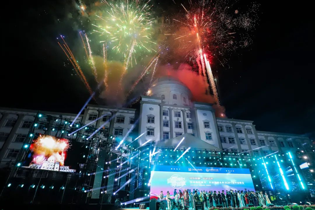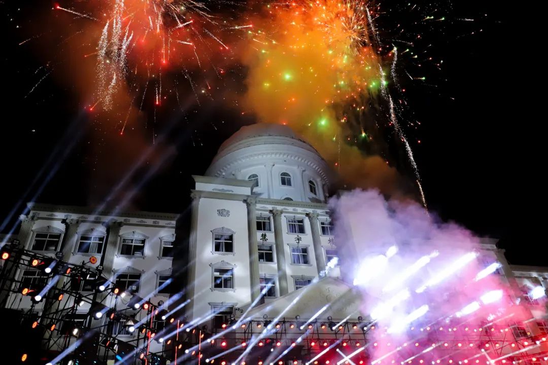 完美绽放的烟火照亮了整个校园