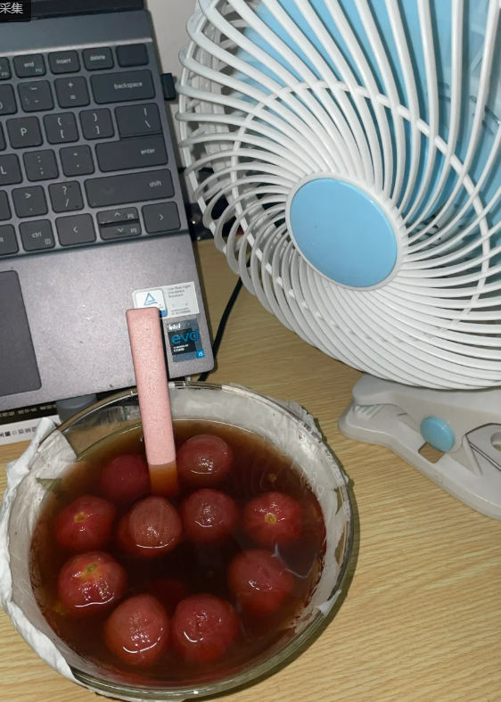 在容器上包上沾水的纸巾,然后用小风扇吹一下,就可以得到一份“冰镇”水果。