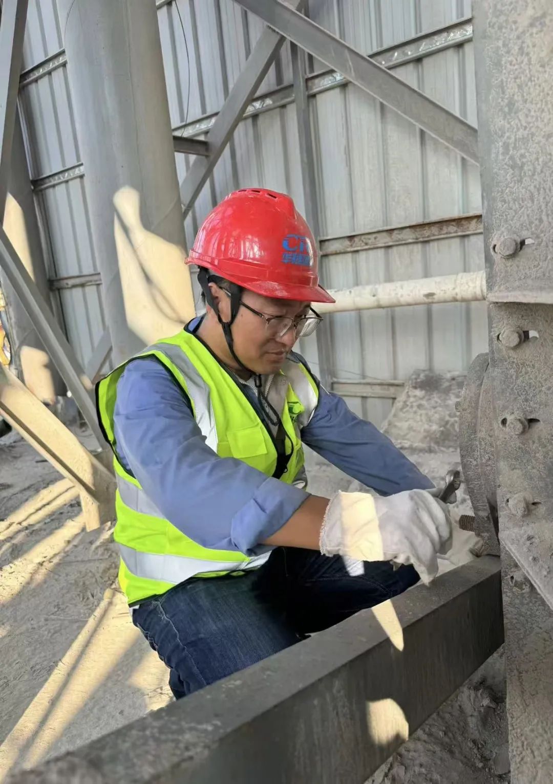 为承担好保供保质任务,华隧绿建机修工不怕脏、不怕累,拆处盖板、修复提升链条,确保砂浆生产平稳运行。