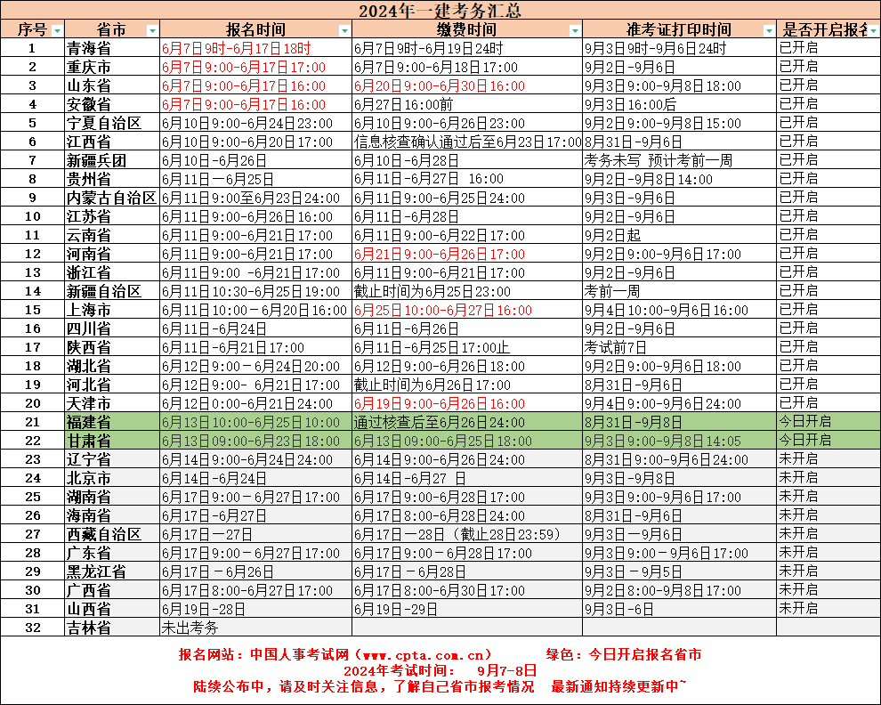 除吉林省,其他省份均已出24年一建考务通知,这份报名攻略收藏好!