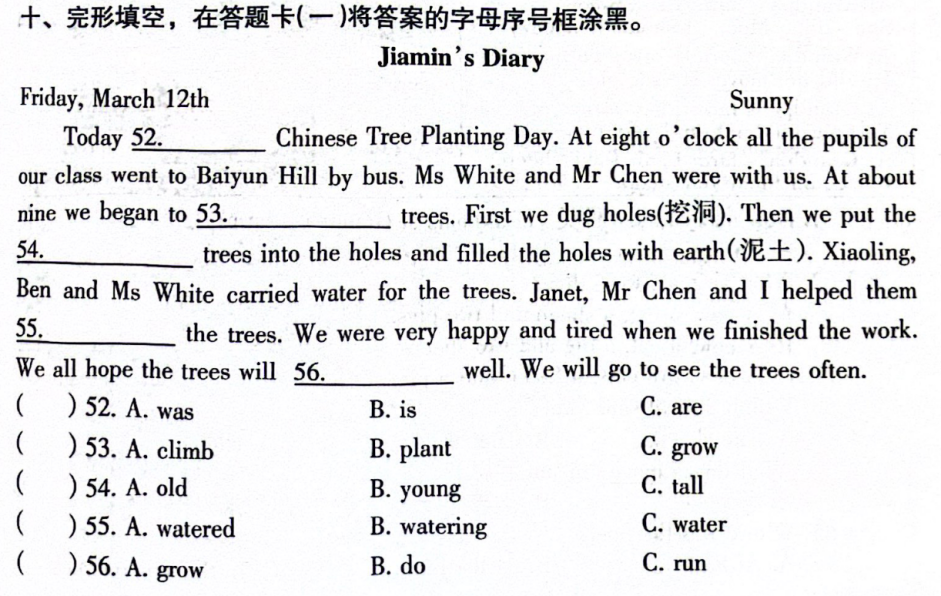 从分值上看,语法好像变成次要项了,但实际恰恰相反。各年级的阅读题中均大量考察语法知识点,5~6年级尤为明显。如本次6年级海珠区的完形填空,虽是属于阅读题,但其中考察的动词不定式及时态的区分均是语法范畴。