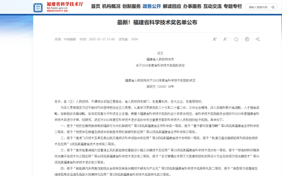 “福建省科学技术奖”是由福建省人民政府设立,旨在奖励在科学技术进步活动中做出重要贡献的个人和组织,推动福建省的科学技术进步和创新发展。
