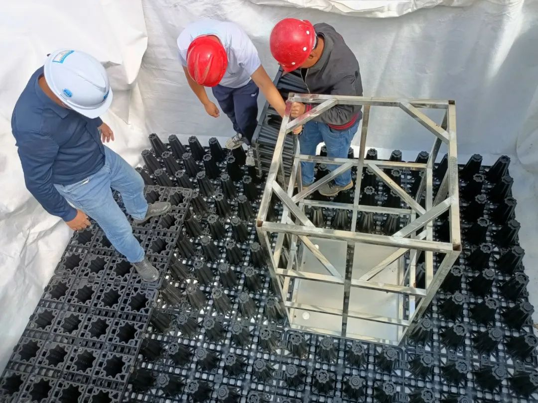 结合种植顶板工程的应用场景特点、难点,东方雨虹研发推出集防水、排水、蓄水、阻根等功能为一体的种植顶板用高分子防排蓄水集成系统。该系统主要由普通防水层、耐根穿刺防水层、高密度聚乙烯复合排水层、聚丙烯排水槽、聚丙烯蓄水模块或蓄水池等组成。其中,由高密度聚乙烯复合排水板、排水槽、排水连接组件等组成的排水层,可进行覆土绿化种植。该系统集防水、排水与蓄水等功能于一体,通过有组织排水方式,将种植顶板上的降水定向排放收集排放至蓄水模块或雨水蓄水池中,可减少顶板滞水,并实现雨水储存利用。