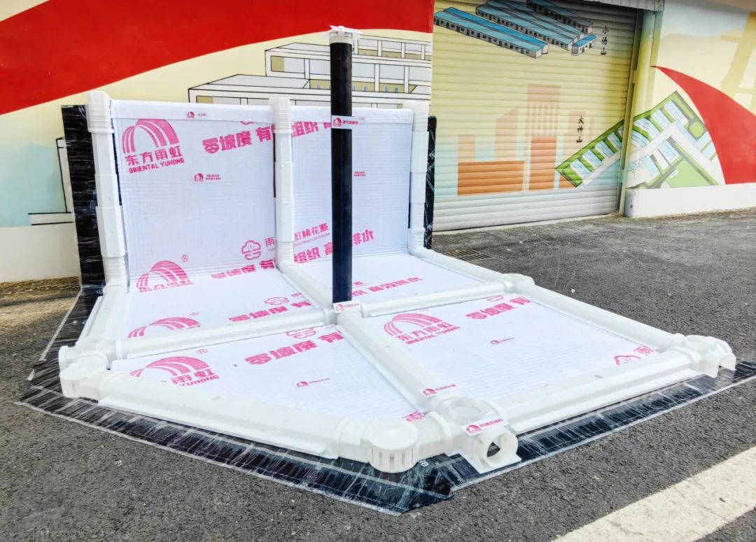 针对传统种植顶板盲沟、盲管做法,东方雨虹在种植顶板用高分子防排蓄水集成系统中,创造性地推出可伸缩排水槽、软连接管等排水组件,在有效解决结构转角、高低跨区排水连接等问题的同时,促进管道连接便捷施工,实现雨水顺利收集排放。此外,系统中排水槽以聚丙烯原料一次注塑成型,抗压强度高,承压性能好,两侧设有翼板,能够有效防止沙土从排水板搭接部位进入,保证排水畅通。