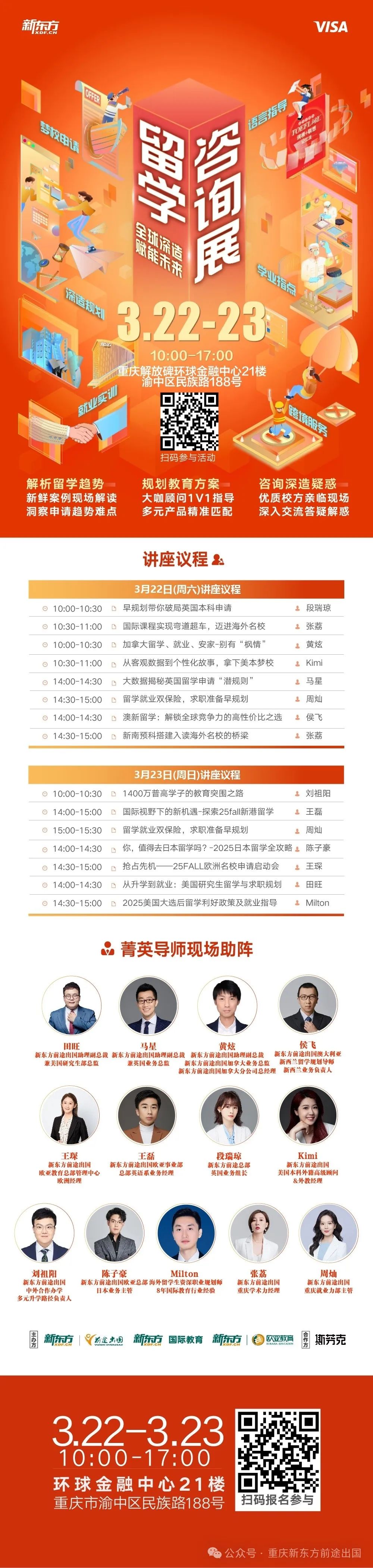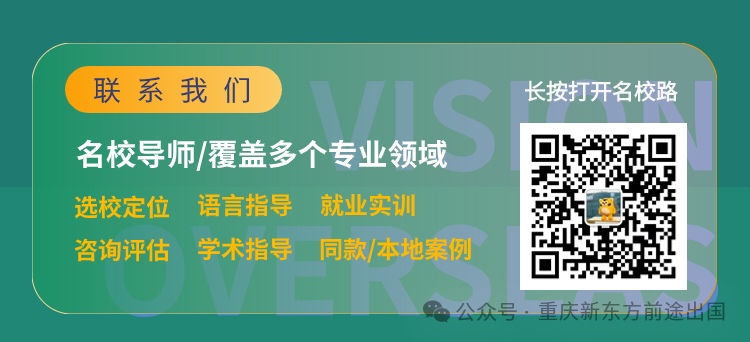25fall留学人,选择重庆新东方前途出国,大数据申请规划、个人背景提升,助力你名校申请脱颖而出!如果有任何关于留学的问题,都可扫下方二维码咨询学姐哟~
