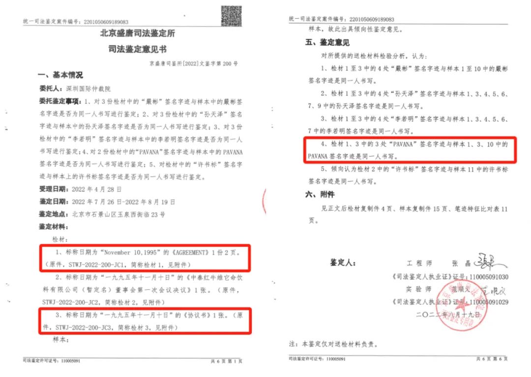 3、50年《协议书》原件经司法鉴定机构鉴定签字真实。面对司法鉴定意见,除了矢口否认外,泰国天丝根本无法解释为什么《协议书》上会有PAVANA女士的亲笔签名。深圳前海法院一审判决认定50年《协议书》真实性的事实依据是司法鉴定意见,与北京东方公证处公证书无关。面对50年《协议书》真实性这一不容改变的事实,泰国天丝无疑是在负隅顽抗,颠倒黑白。