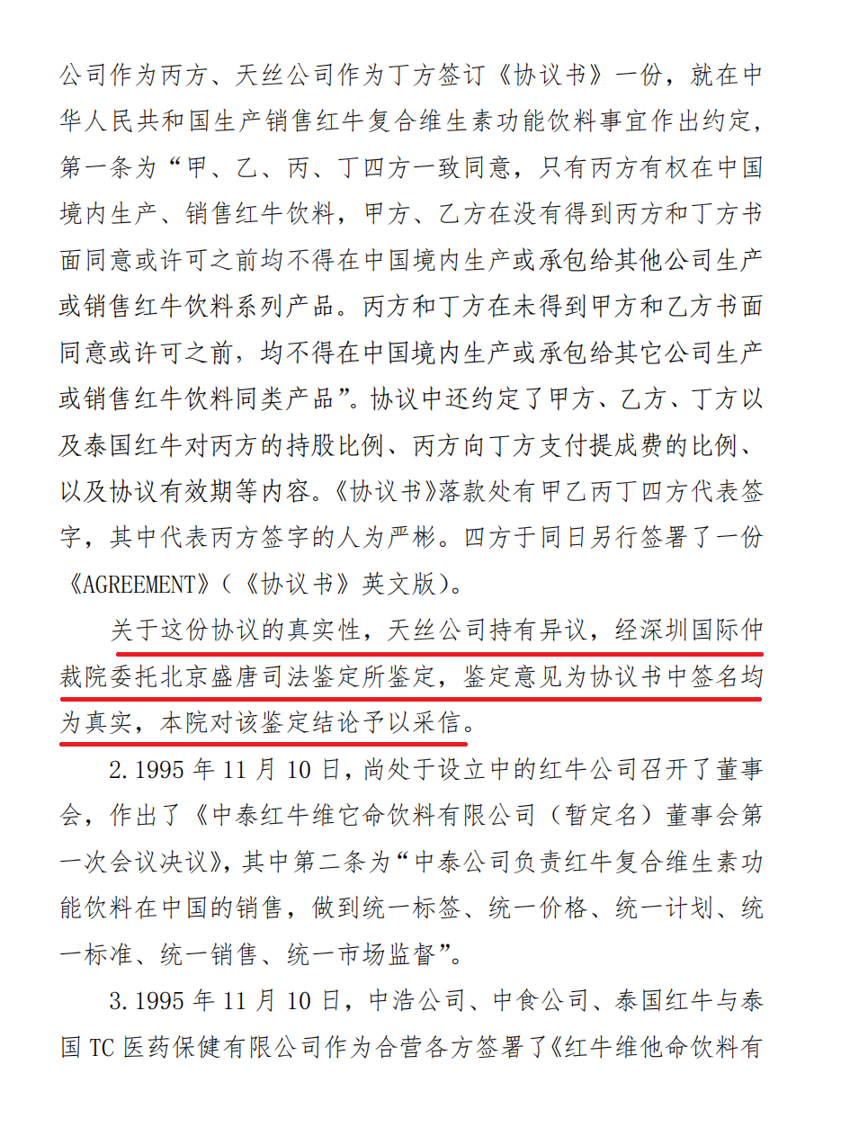 特别是,北京市高级人民法院(2023)京民终935号生效裁定书已认定中国红牛是50年《协议书》签约主体,享有该协议约定权利。
