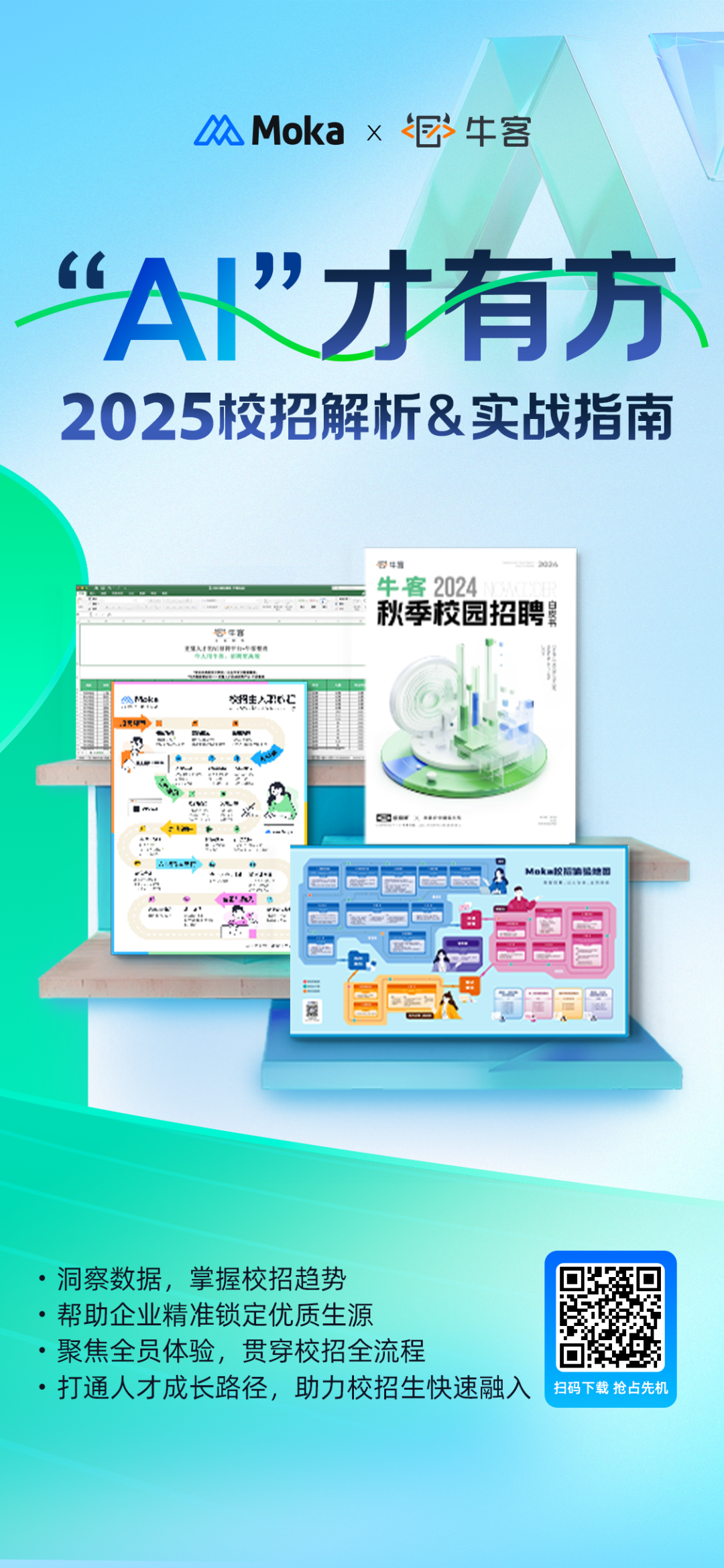Moka × 牛客联合发布《2025 校招解析&实战指南》,聚焦最新校招趋势,助力企业打造更具竞争力的校园招聘策略。
