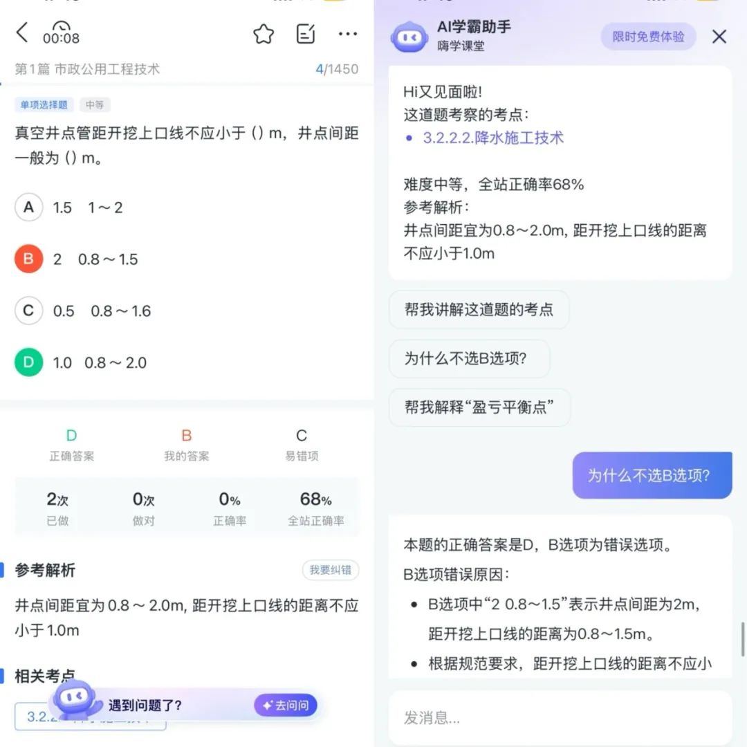 在学习过程中,学员需要大量刷题,AI学霸助手整合了丰富的题库资源,随时准备为你答疑解惑。
