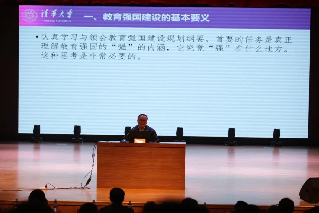 谢维和教授分别从“教育强国建设的基本要义”、“德育与智育的统一”、“教师的责任”这三个主要方面展开讲座。在教育强国建设方面,他从强国的定义和要求出发,指出教育强国建设要锚定世界强国目标,与世界强国对接。接着他对教育强国建设的整体框架、教育强国建设的评价指标体系和教育强国建设的本质特征进行了分析。