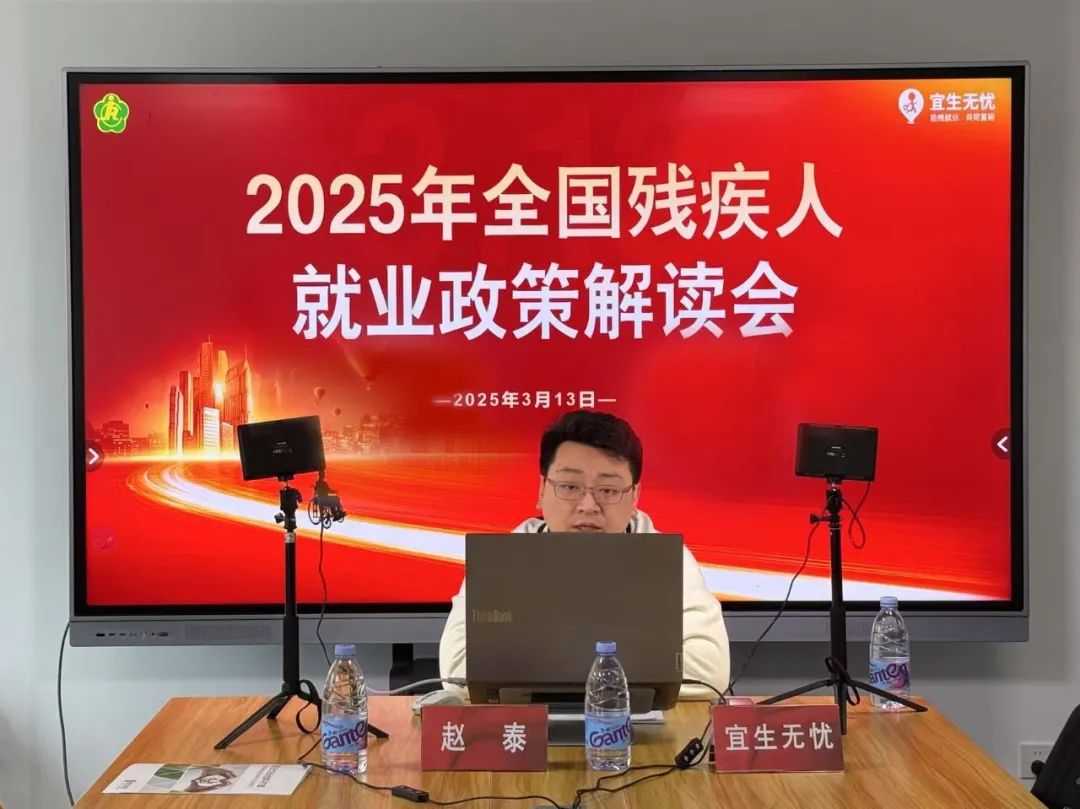 为深入贯彻落实国家关于残疾人就业保障的政策要求,帮助用人单位和社会各界更好地理解、执行残疾人按比例就业制度,同时推动互联网认证流程的高效化、透明化,强化残疾人就业意识。北京宜生无忧科技有限公司与中国残疾人联合会就业服务指导中心携手于3月13日成功举办「2025年全国残疾人就业政策解读会」。此次活动特邀中国残疾人联合会就业服务指导中心就业服务处赵泰老师,为与会者深入解读国家关于按比例安排残疾人就业的政策,并传达全国残疾人按比例就业情况联网认证工作的最新动态,数千名来自全国各地企业的人力和财务负责人参与交流。