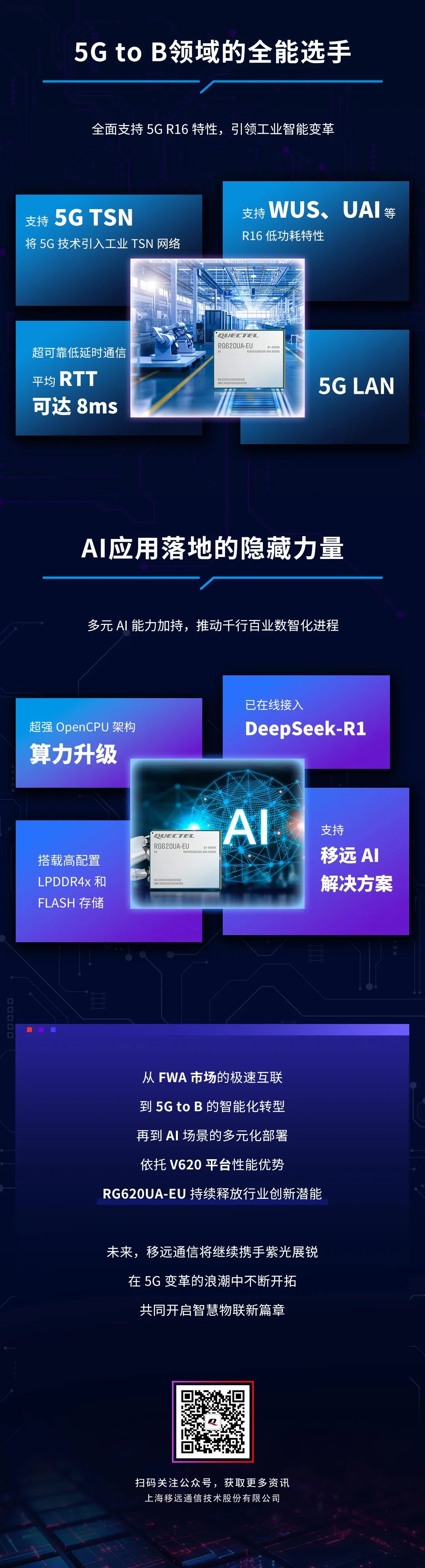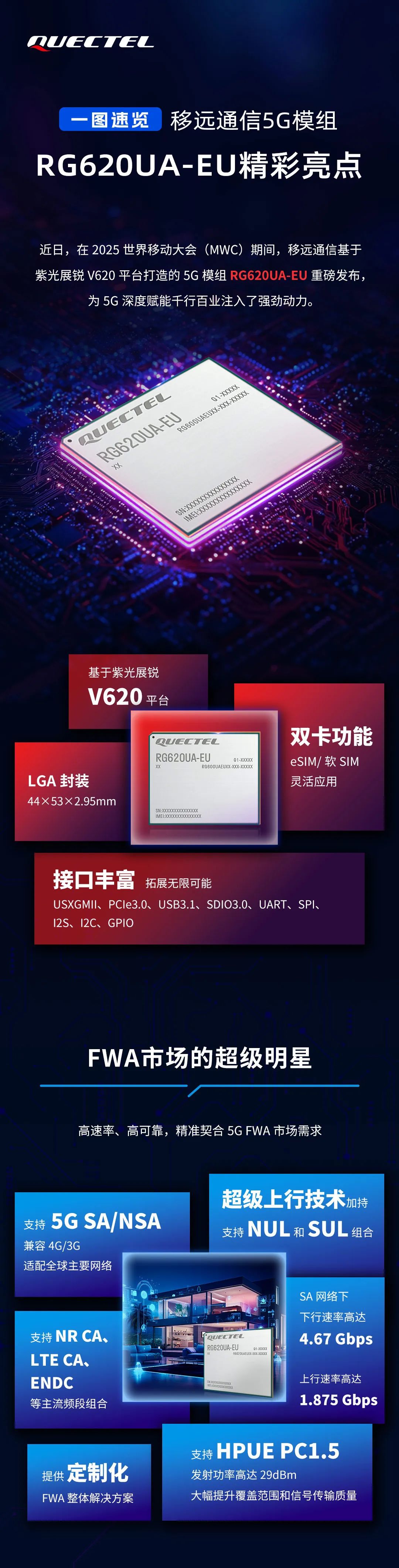 一图速览 | 基于紫光展锐V620平台,移远通信5G模组RG620UA-EU精彩亮点轻松Get