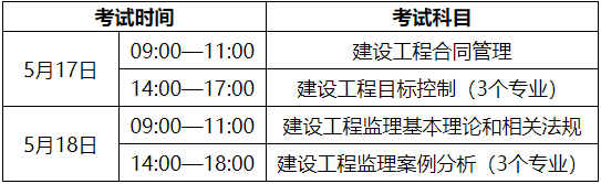 监理工程师职业资格考试设《建设工程监理基本理论和相关法规》(客观题)《建设工程合同管理》(客观题)《建设工程目标控制》(客观题)和《建设工程监理案例分析》(主观题)4个科目;其中《建设工程监理基本理论和相关法规》和《建设工程合同管理》为基础科目;《建设工程目标控制》和《建设工程监理案例分析》为专业科目。专业类别分为土木建筑工程、交通运输工程和水利工程,报考人员可根据实际工作需要选报其一。具体考试时间及科目安排如下: