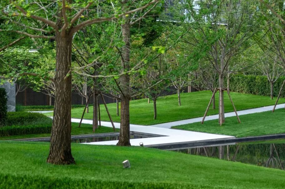 一木见森林,细节之处的用心见微知著。曲江印园林景观内精心甄选了百余种植被,乌桕、红枫、朴树、山杏、国槐、枫竹等错落有致。特聘请专业养护团队根据植被习性、生长周期、养护条件,严格遵循时间表作业,从树木修剪、施肥到病虫害防治,都有条不紊地进行,始终保持生机盎然景象。