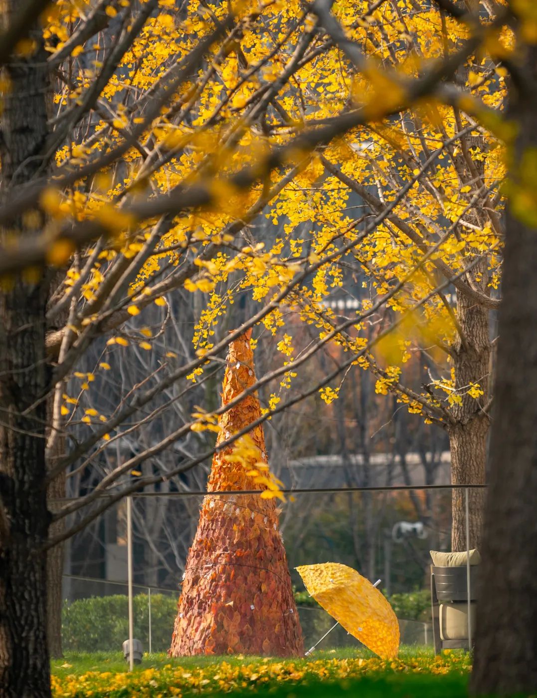 每至秋日,这片银杏林便迎来高光时刻。金黄的落叶纷扬飘落,物业将其赋予温度,摆出各种创意造型。这份对细节的用心,让这片银杏林成为业主秋日里最期待的打卡地。