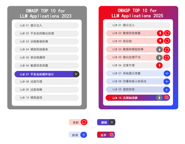 随着LLM技术的发展以及应用场景的不断扩展,OWASP在2025年发布了最新版本的OWASP Top 10 for LLM Applications,进一步强调了LLM应用安全的特殊性。
