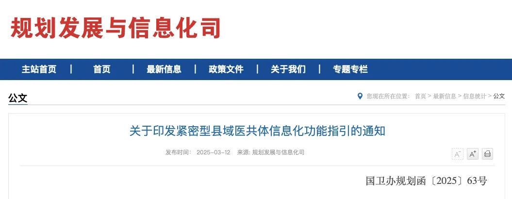 国家卫生健康委等三部门印发《紧密型县域医共体信息化功能指引》