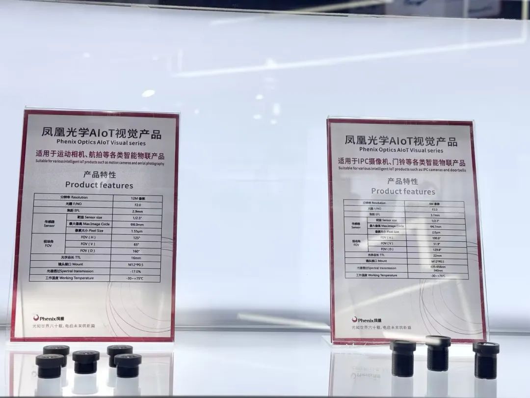 凤凰光学以 "光知世界六十载,电启未来筑新篇" 为主题,于 E5-5417 展位全面展示成立 60 周年的创新成果与技术突破。作为深耕光学领域一甲子的行业标杆,凤凰光学在本届展会上集中呈现了覆盖超精密光学元件、高像素光学组件、科学仪器三大核心领域的七大产品矩阵,重点展示了各类光学玻璃镜片、金属零部件;医疗光学元件及组件、科学仪器;车载镜头、机器视觉镜头以及AIoT镜头等主流产品。