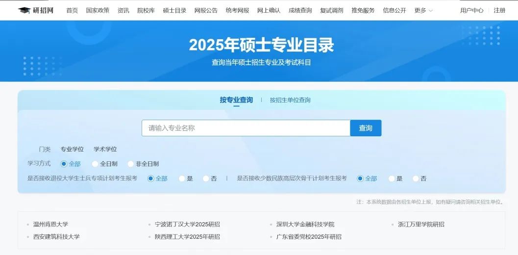 路径1:硕士目录→按专业/地区/学习方式精准筛选