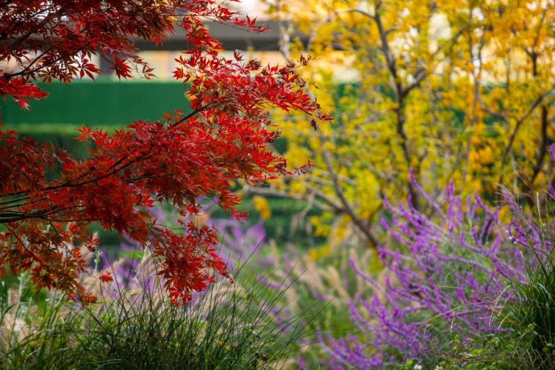 一木见森林,细节之处的用心见微知著。曲江印园林景观内精心甄选了百余种植被,乌桕、红枫、朴树、山杏、国槐、枫竹等错落有致。特聘请专业养护团队根据植被习性、生长周期、养护条件,严格遵循时间表作业,从树木修剪、施肥到病虫害防治,都有条不紊地进行,始终保持生机盎然景象。