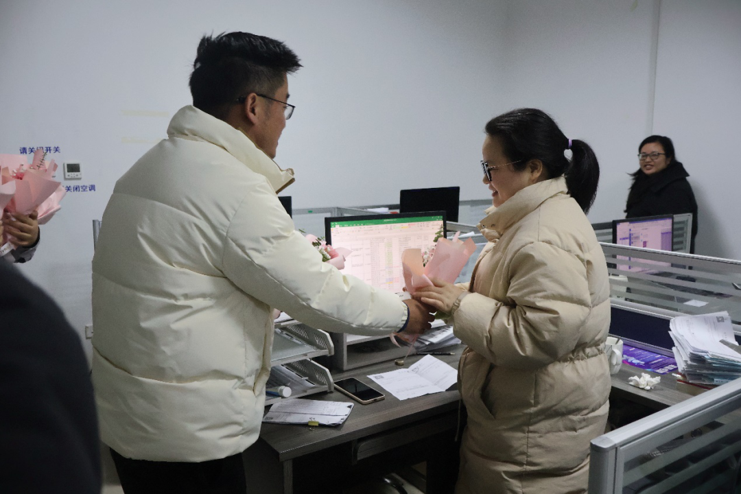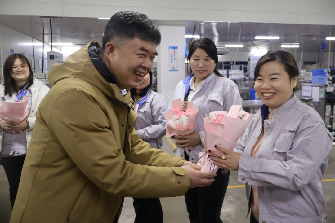 江西水晶领导层手捧鲜花亲自送到女职工手中,为她们送上诚挚的节日祝福并对她们的辛勤付出表示衷心感谢。收到鲜花的女职工们脸上洋溢着喜悦的笑容,她们纷纷表示,各领导的亲临和祝福让她们倍感温暖。