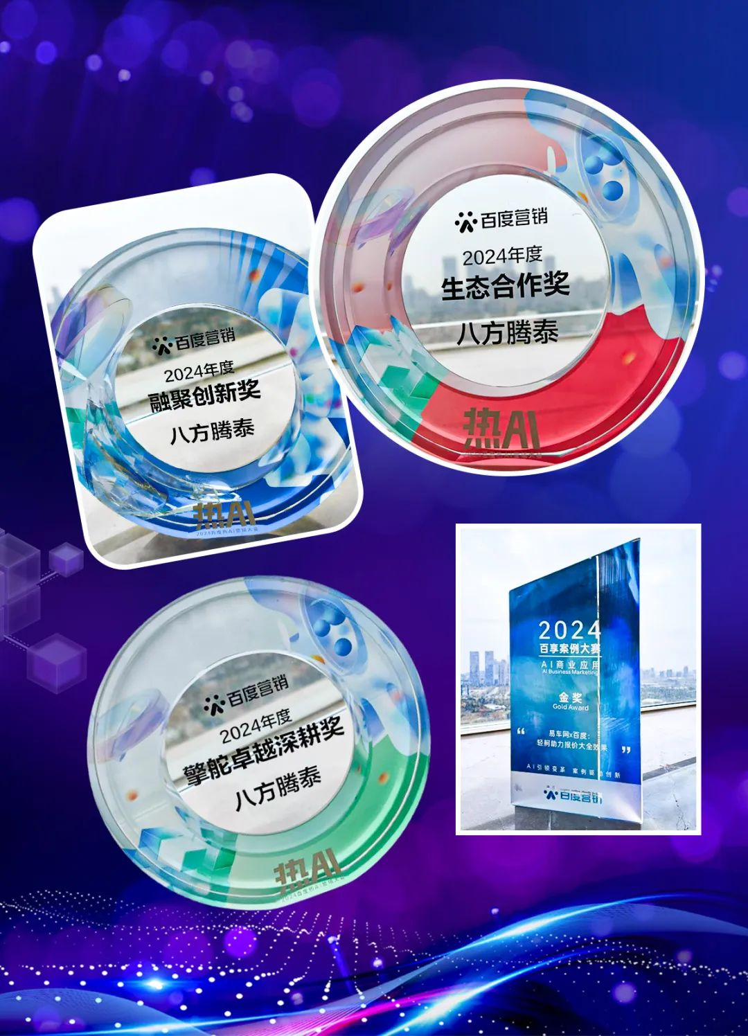 在2024年,八方腾泰展现出了满腔热忱的活力与实力,无论是规模盛大的行业盛会,还是细腻入微的深度交流研讨,都可见其身影跃动,贡献着智慧与力量。在案例评选上,八方腾泰秉持精益求精、追求卓越的理念,对每一份申报材料精雕细琢,通过为客户提供兼具创意与实效的营销,成功赢得了来自百度营销体系及广告行业第三方权威机构的共计18项殊荣。